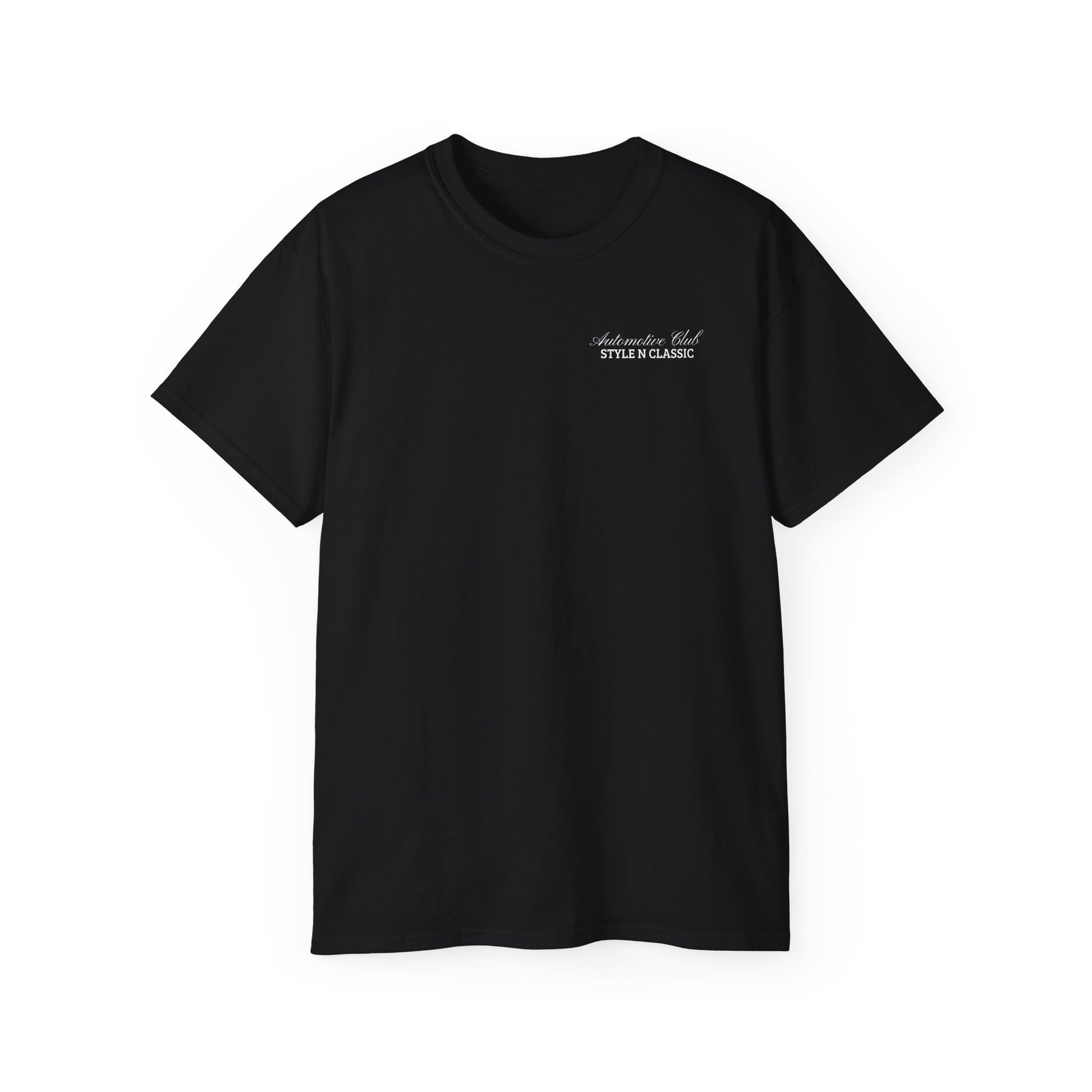 The Classic "Style N Classic Automotive Club" T-shirt in black is a high-quality garment designed for enthusiasts of classic cars. Made from durable cotton fabric, it features the club's emblem in white or silver print on the front, offering a sleek and timeless aesthetic. This shirt allows individuals to express their passion for vintage automobiles and showcases their belonging to a community of like-minded enthusiasts. Available in various sizes, it is a must-have addition to any automotive aficionado's wardrobe.