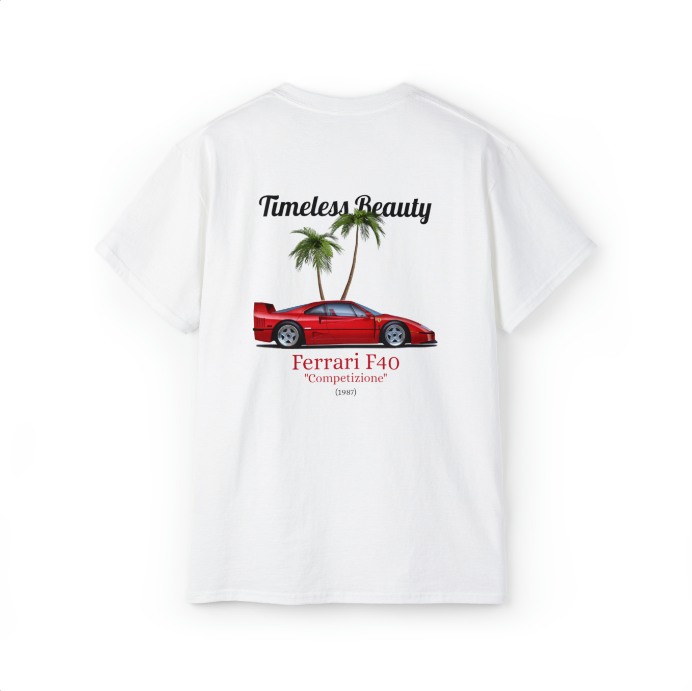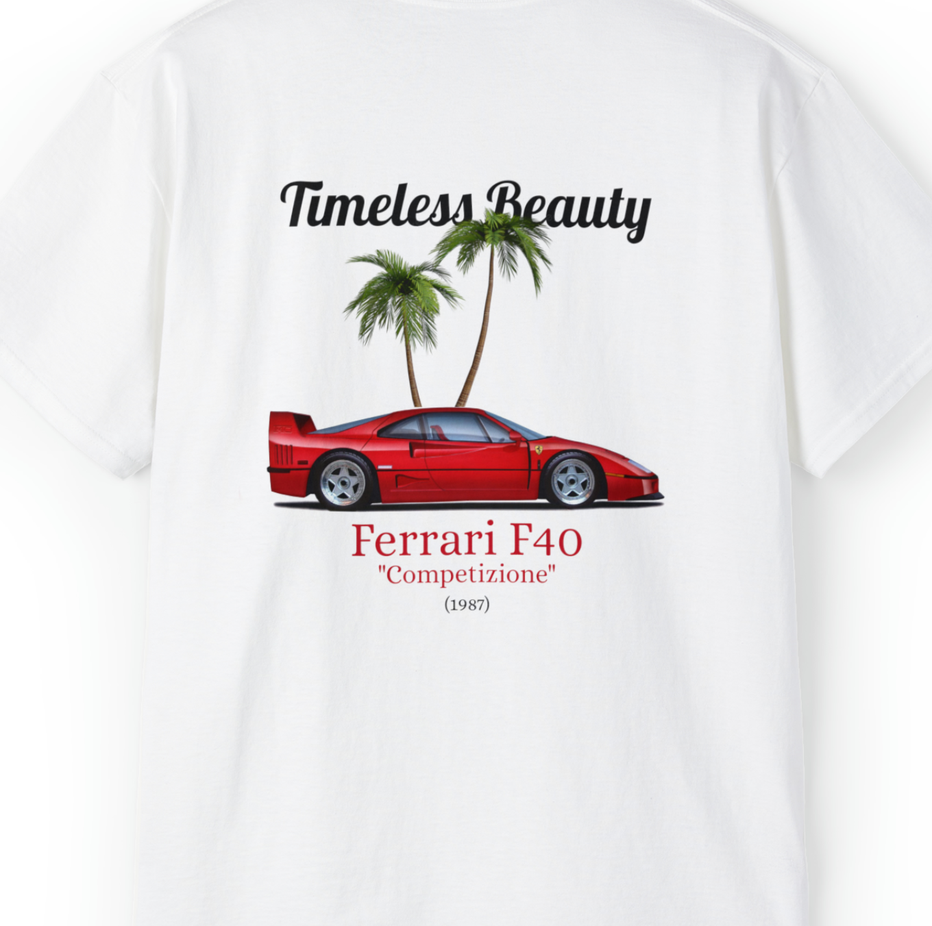 Unleash the power and prestige of the iconic Ferrari F40 Competizione with our exclusive T-shirt, it is more than apparel; it's a testament to your passion for automotive greatness. Drive fashionably, wear with pride.